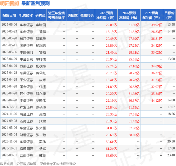 最新盈利预测明细如下: